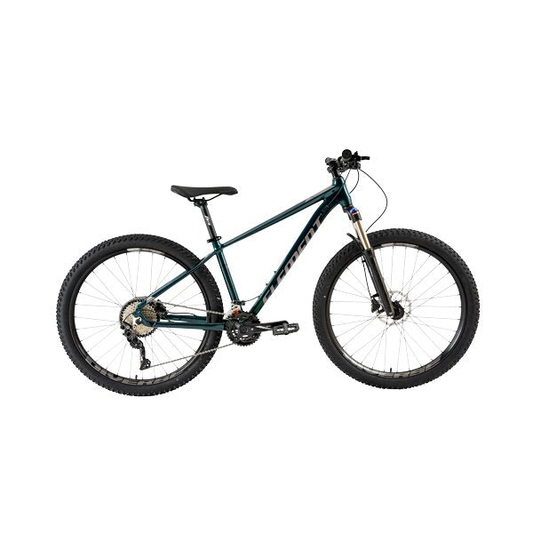 The Element Cyber Z10, a high-performance hardtail mountain bike with an alloy frame, internal cable routing, and Shimano Deore 2x10-Speed drivetrain. Featuring hydraulic disc brakes, ION lock suspension fork, and 27.5" tires on double wall alloy rims, it's perfect for trail and off-road riding.